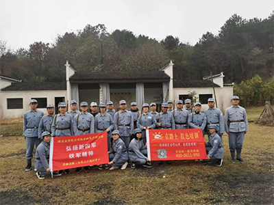 11月21日,在安徽在路上红色文化培训中心指导老师的组织陪同下,绩溪县供电公司机关和生产党支部党员们(下称学员)来到红旅小镇,换上军装,带好军帽,扬起班旗,踏上征程,重走长征路!